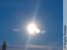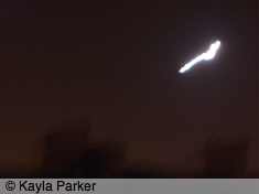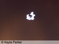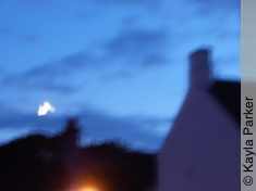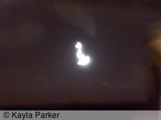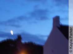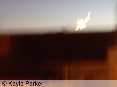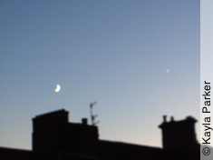 Kayla's photo of the young crescent moon just above the chimney, it's early eveningKayla's photo of the young crescent moon just above the chimney, a minute later Read More...