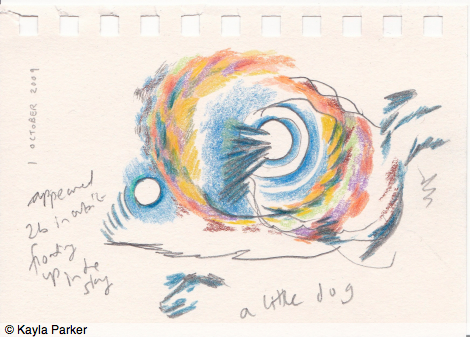 In the bay window upstairs I draw down the moon, my pencil feels its way across the scratchy paper by moonlight. Drawing without looking. Through the double glazed window to the south east I can see another, smaller, more perfectly round moon lower down and slightly to the left, floating in the sky: the double moon.