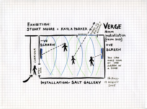 Original plan for dual screen installation of Verge at Salt Gallery, Hayle, Cornwall.