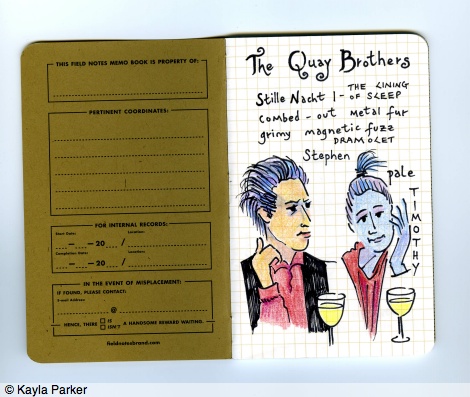 ‘Kayla Parker's sketchbook drawings of the Quay Brothers at Exeter Picturehouse, 16 Feb 08. Nice notebook. -jc.10.16.09 #’ A post from the daily flow of linkage called ‘Fresh Signals’ at Coudal.com Chicago: Coudal Partners, Inc.